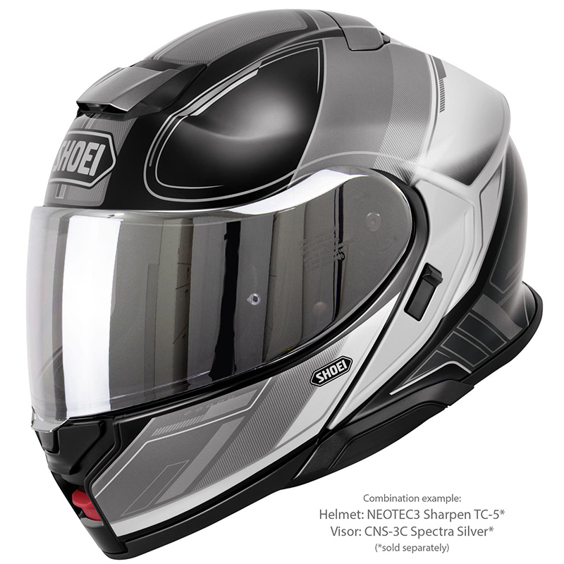 A SHOEI NEOTEC3-hoz különféle árnyalatú és tükörbevonatú plexik állnak rendelkezésre, amelyek az ECE homologizációs irányelveinek megfelelően használhatók. A sisak alapfelszereltségként CNS-3C plexivel van felszerelve. A páramentesítő PINLOCK®EVO lencsék az összes ilyen típusú plexibe felszerelhetők, 1db PINLOCK®EVO lencse a sisak tartozéka.