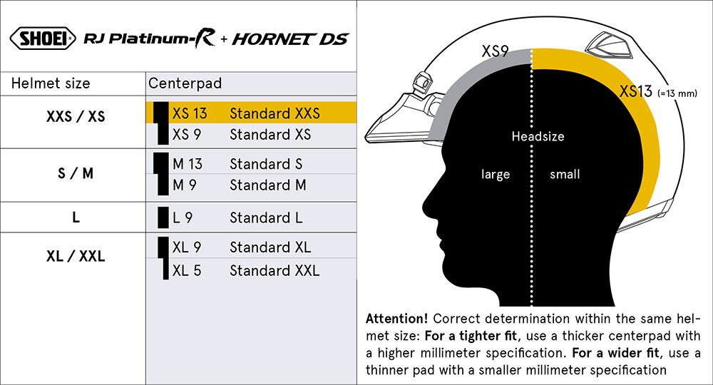Shoei RJ Platinum-R, Hornet DS Fejpárna L-9mm